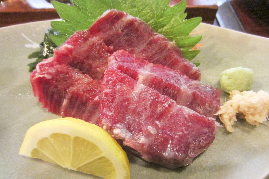 Horse meat, or basashi (馬刺し) in Japanese is not consumed in Western countries in North America or Europe, but it’s certainly a delicacy in Japan. Kumamoto Prefecture on the southern island of Kyushu is particularly famous for its raw horse meat.