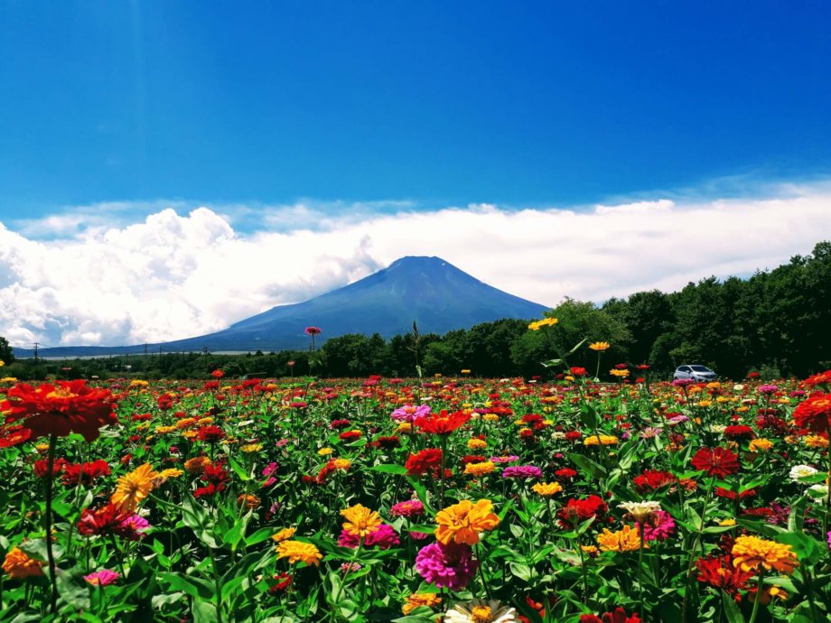 If you’re not much of a climber, but still want to see Japan’s symbolic mountain, there are a number of famous fields surrounding Mount Fuji in Yamanashi Prefecture that provide incredible views of both endless flowers and the peak together. One of the most popular is Yamanakako Hanano Miyako Park (花の都公園). This 300,000 square-meter park is filled with millions of seasonal flowers, and visitors can enjoy the incredible view of Mt.Fuji as it serves as a backdrop for the endless flowers. The park is located close to one of the famous 5 Fuji Great Lakes, Lake Yamanaka, and Oshino Village. From early to mid July, the colorful poppies all bloom, and throughout August the field turns golden with sunflowers.