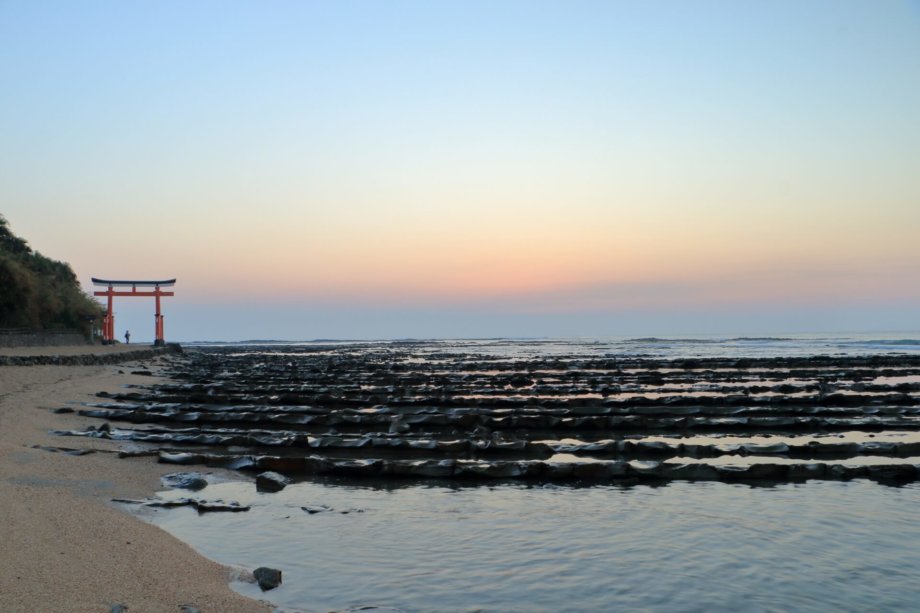 During the low tide, the shallow water around Aoshima Island pulls back to reveal perfect rows of stones and tide pools. This is a natural geological phenomenon known as the Devil’s Washboard, or “Oni no Sentakuita” in Japanese.