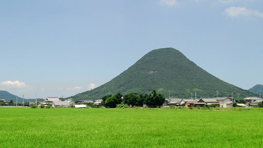 Mount Iinoyama, also known as Sanuki Fuji, is a mountain located on the border of Marugame City and Sakaide City in Kagawa Prefecture. It has an elevation of 421.87 meters. The mountain has three hiking trails that are well-maintained and safe to climb. At the summit, there are many large rocks, and the mountain is famous for the legend of the giant “Ojomo” who created it.